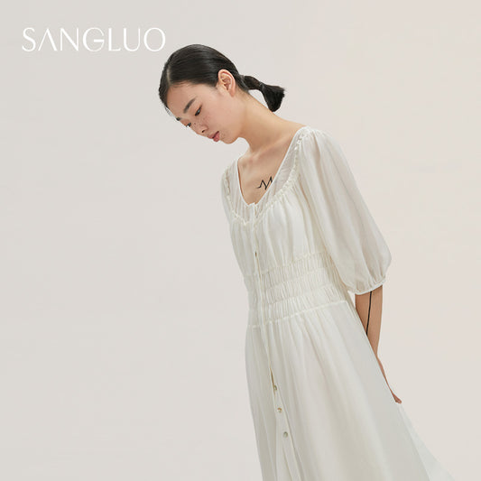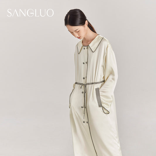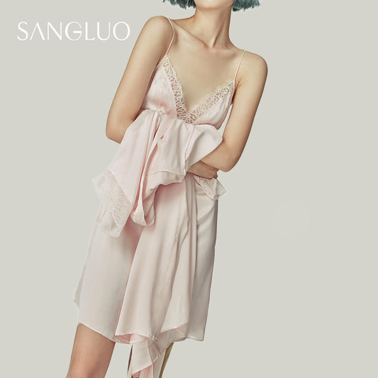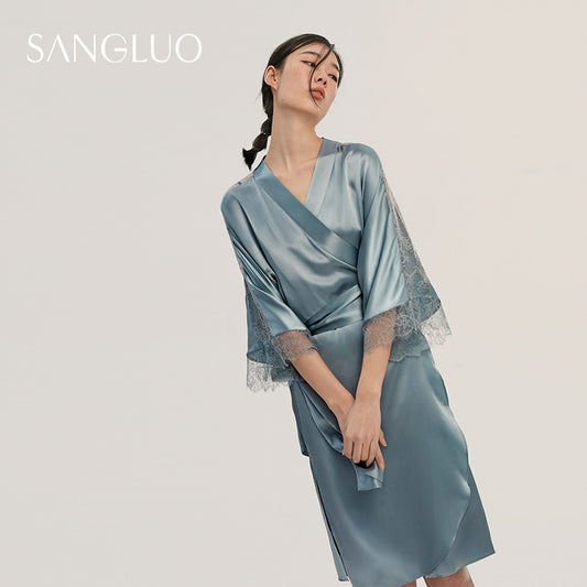 19MM Silk Nightgown Sexy Lace Elegant Robe